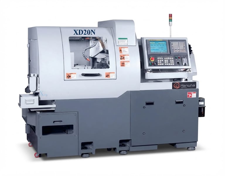 Torno de cabezal movil tipo Suizo marca HANWHA modelo XD-26-H con 5 ejes.